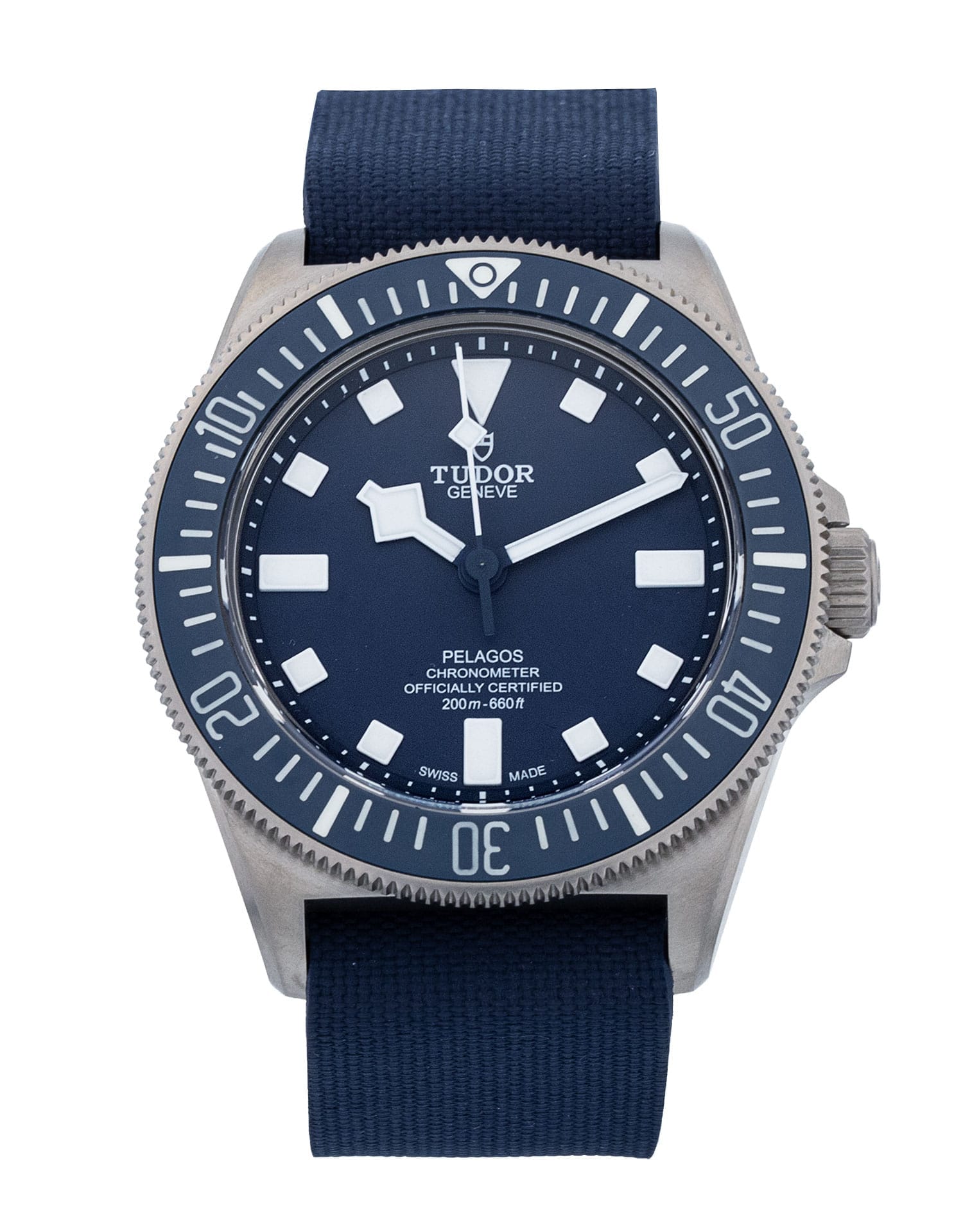 This Tudor Pelagos FXD M25707B/23-0001 has a blue dial and a rubber strap. This Tudor has undergone a thorough inspection of water resistance, accuracy, functionality and condition to determine the level of reconditioning required to meet our strict standards. It has also been referenced against technical documents and manufacturer records where available to ensure authenticity and a clean history. Our watches have a 24-month warranty for your peace of mind, in conjunction with any remaining manufacturer’s warranty from new or from service. To maintain the manufacturer’s warranty on this watch, it has not been polished in our service centre.