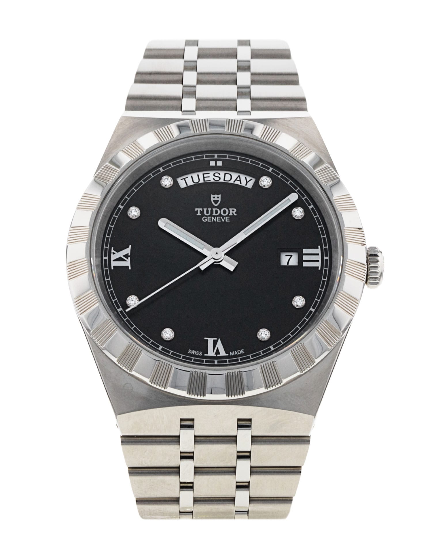 This Tudor Royal M28600-0004 has a black diamond dial and a bracelet strap. This Tudor has undergone a thorough inspection of water resistance, accuracy, functionality and condition to determine the level of reconditioning required to meet our strict standards. It has also been referenced against technical documents and manufacturer records where available to ensure authenticity and a clean history. Our watches have a 24-month warranty for your peace of mind, in conjunction with any remaining manufacturer’s warranty from new or from service. To maintain the manufacturer’s warranty on this watch, it has not been polished in our service centre.